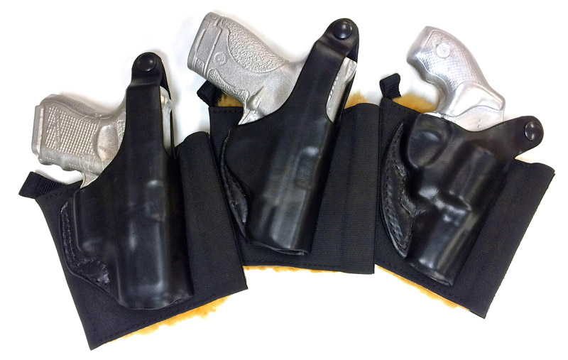 Garrity's Gunleather is pleased to announce we are now offering an ankle holster, manufactured in conjunction with Wilderness Tactical Products of Phoenix, AZ. The leather version (pictured above)features a high-quality wide elastic ankle band, with genuine sheepskin padding with a moisture barrier underneath, made by Wilderness Tactical. Garrity's Gunleather is making the holster body, out of thin, light-weight, water-resistant genuine shell horsehide; molded to the specific firearm, with pull-through snap for added retention but fast one-motion draw. Available for most popular sub-compact and compact autos and snub-nose revolvers. PRICE - $112.95 The all-elastic version (pictured above) is made exclusively by Wilderness Tactical and available through Garrity's Gunleather. It is their design improvement on the original and popular Renegade ankle holster. Improvements on the Renegade include better quality elastic, a Velcro overlock tab to prevent unintentional unfastening (featured on leather version also), and a wide elastic retention strap for fast pull-through draw. Available for most popular sub-compact and compact autos and snub-nose revolvers. See Widerness Tactical's website for gun fit chart and further details: http://www.thewilderness.com/ankle-holsters/the-wilderness-renegade-ankle-holster/